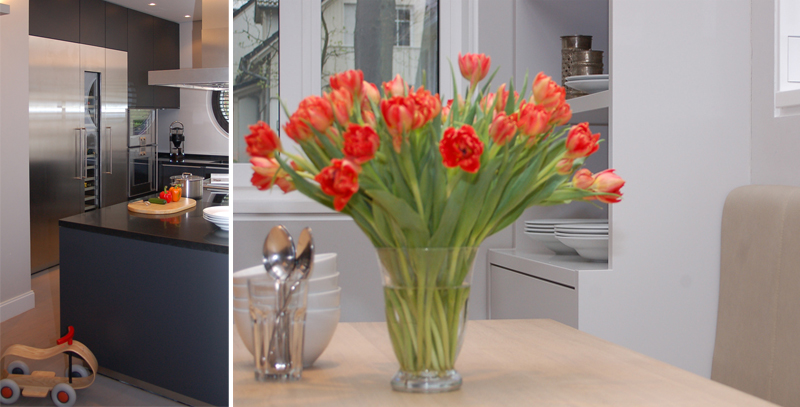 Neubau eines Einfamilienhauses, Baujahr 2008. Durch die Zusammenarbeit zwischen Bauherren und Innenarchitekt zu Beginn der Bauplanung, ist es gelungen ein gestalterisches Gesamtkonzept zu ermöglichen. Gemeinsam konnten so Architektur und Innenarchitektur ein anspruchvolles Gesamtbild entstehen lassen.